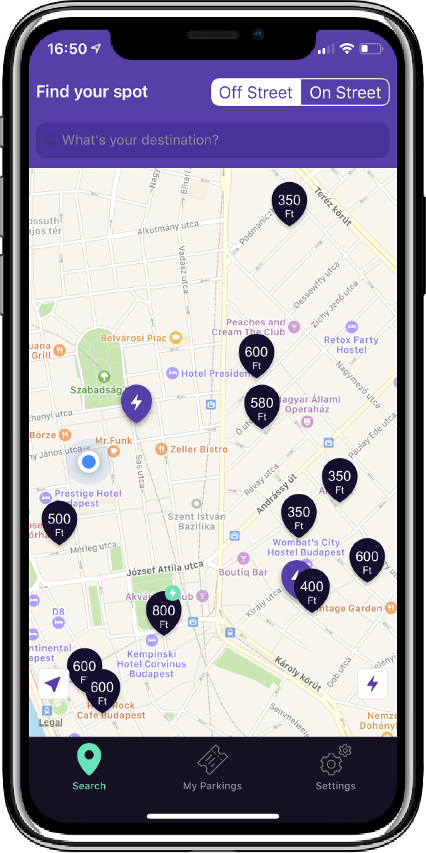 After you've downloaded the app and registered, rely on your GPS or type your destination into the search field and you'll be shown free parking facilities nearby.