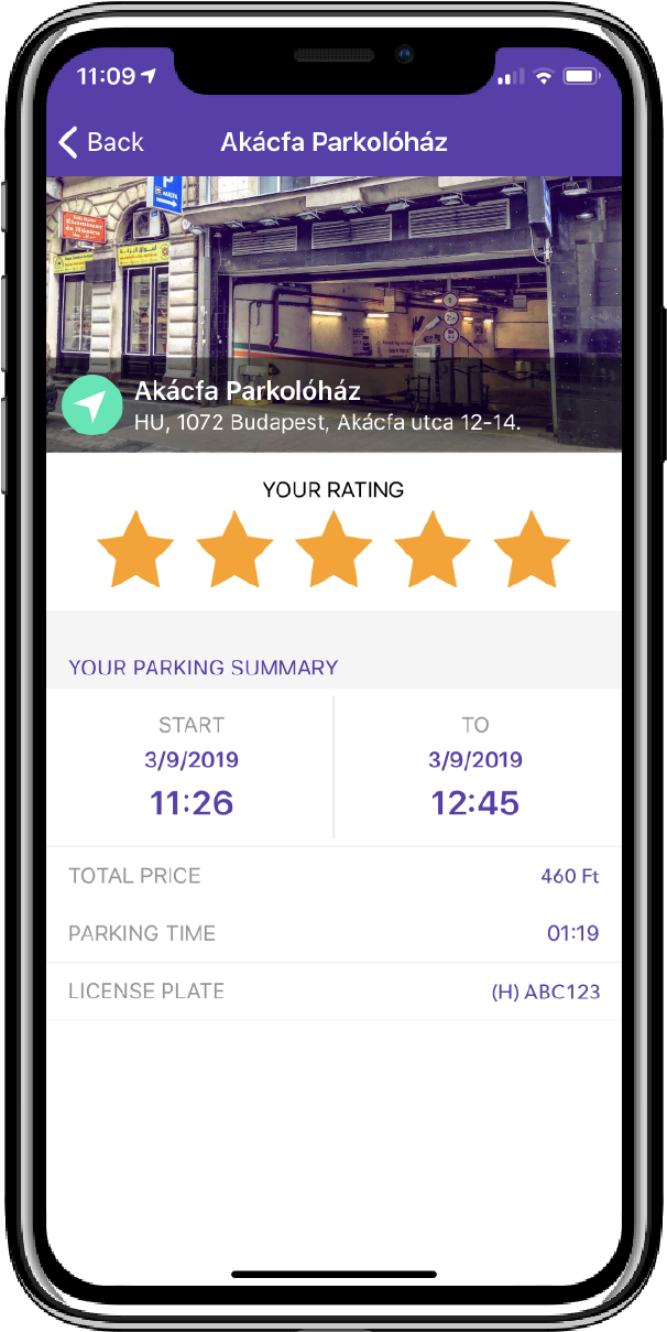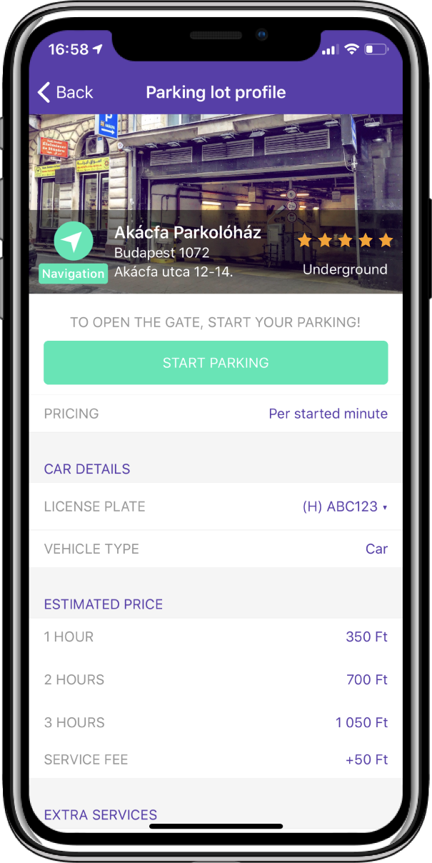 Search for the parking place closest to your destination on the application’s map through the wide network of hotels, apartment buildings, office buildings, parking garages, and shopping malls.