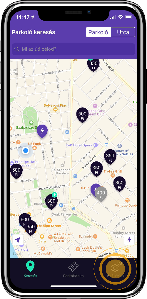 parkolás/töltés leállítása után levonásra kerül a végösszegből.