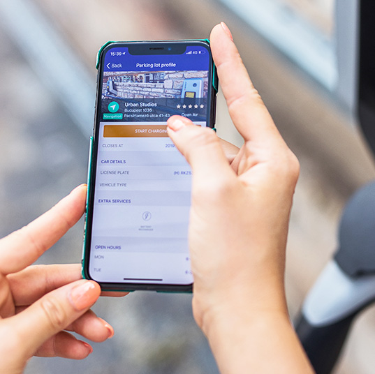 A Parkl térképén keresd meg az úti célodhoz legközelebb eső elektromos töltőt, majd kezeld az egész folyamatot - a töltés elindításától a készpénzmentes fizetésig - a telefonodról!