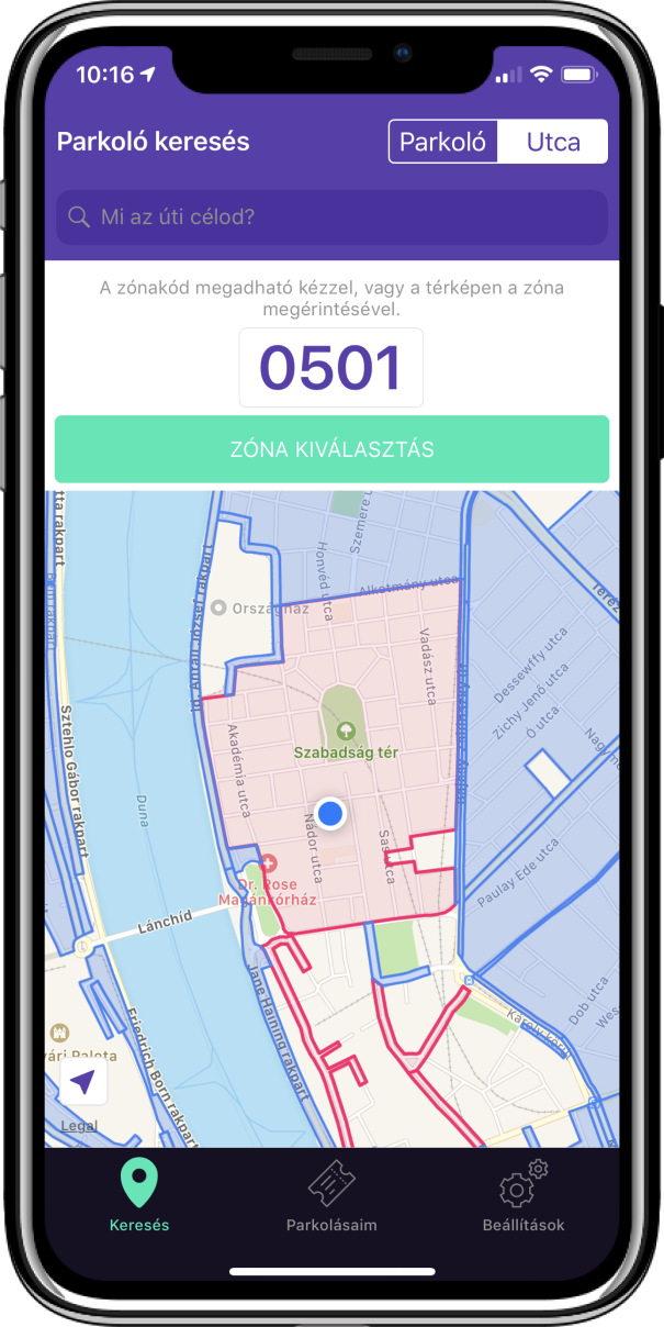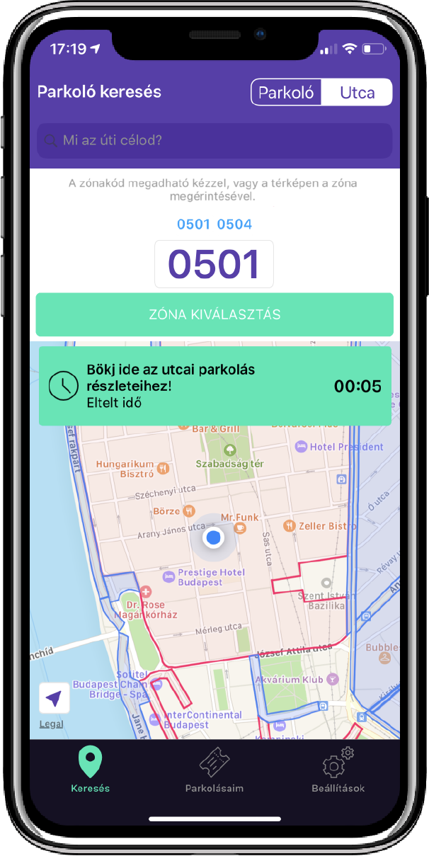 Az applikáció a helyzeted alapján automatikusan meghatározza a zónát amiben parkolsz, így nem kell a megfelelő zónakód után kutatnod.