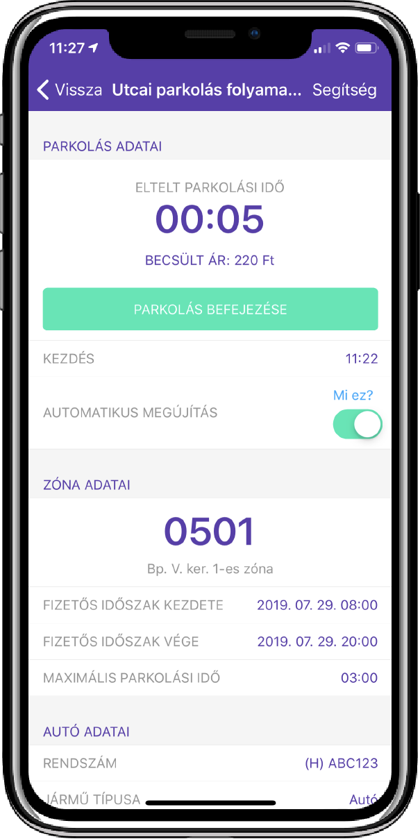 időtartam elérésekor. A fizetős időszak végén a parkolásod automatikus leáll.